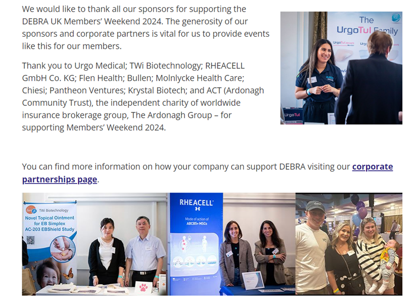 United Kingdom EB patient event – Members’ Weekend 2024 is the largest gathering event for EB patients in the UK annually. TWi Biotechnology is honored to participate in this event. Dr. Chen-En Tsai, President of TWi Biotechnology, and Dr. Annie Pai, Deputy Director of Clinical Research, communicated with the Principal Investigators of the TWiB’s EBShield study in UK, and consulted for the advises from UK EB key opinion leaders for the current status of EBS care. TWi Biotechnology also set up a booth to share EBShield study information with EB families to understand the needs of patients. TWi Biotechnology has always been committed to the research and support of EB, and continues to provide care and assistance to patients with rare diseases through corporate social responsibility.