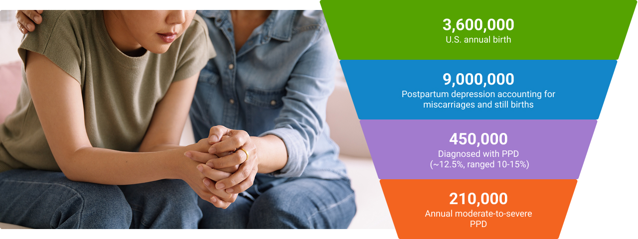 Postpartum depression (PPD) affects some women after childbirth and can cause considerable suffering, not only for mothers, but also for their close family members. It has been reported that 121 million women are affected globally. In the US, about 50-80% women experience the “baby blues” each year, which includes still births and miscarriages, and 450,000 mothers are diagnosed with postpartum depression.